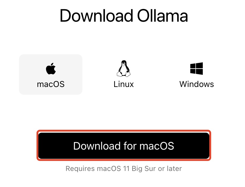 从Ollama官方网站下载Ollama:
