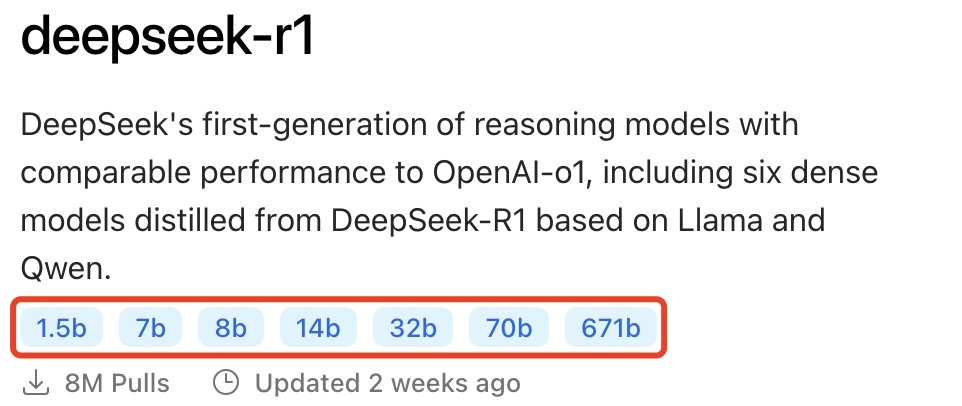 进入Ollama官方网站后,可以看到Ollama已经支持DeepSeek-R1的部署: