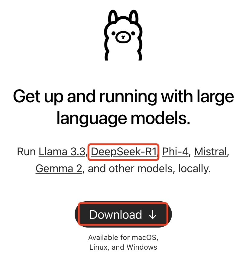 点击Download按钮下载符合自己平台的Ollama: