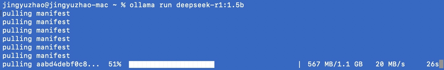 jingyuzhao@jingyuzhao-mac ~ % ollama run deepseek-r1:1.5b
