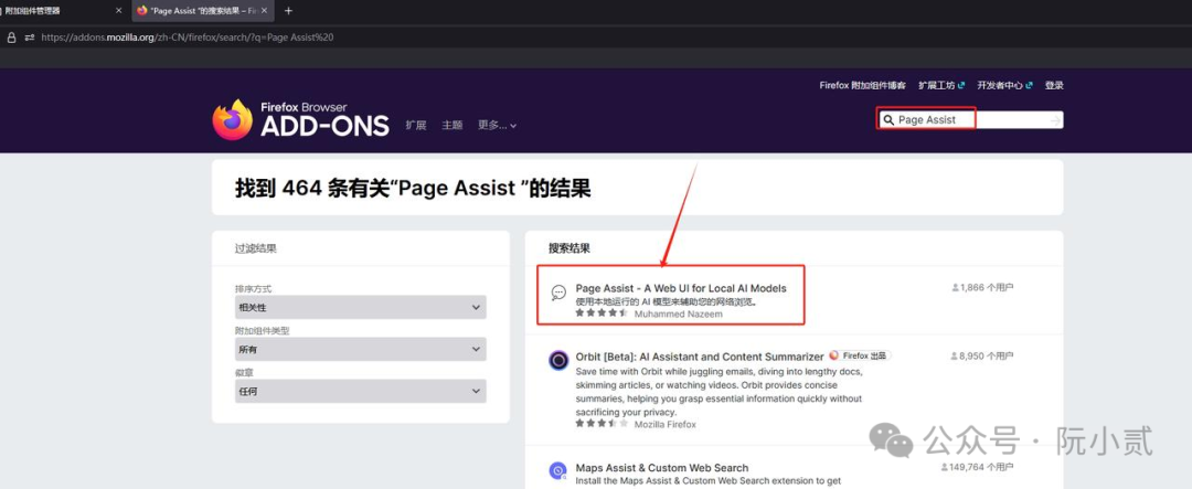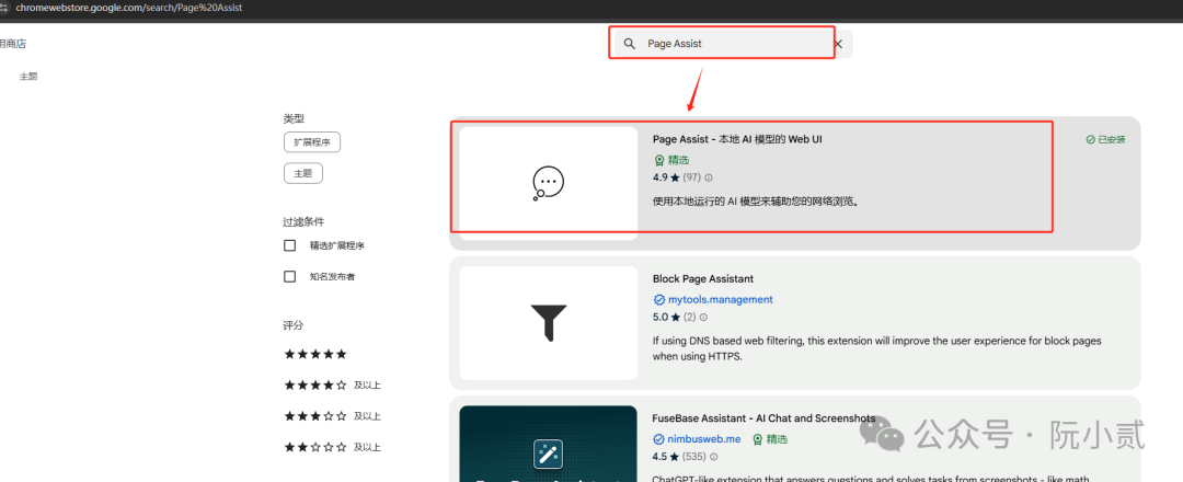 输入【Page Assist】 搜索插件