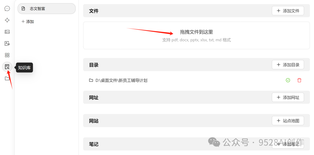 文件夹目录:可以添加整个文件夹目录,该目录下支持格式的文件会被自动向量化;