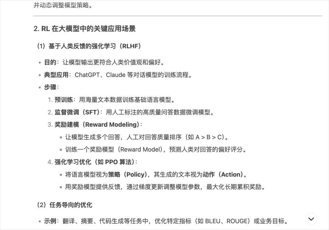比如我想让R1给我解释一下什么叫大模型中的RL用法。