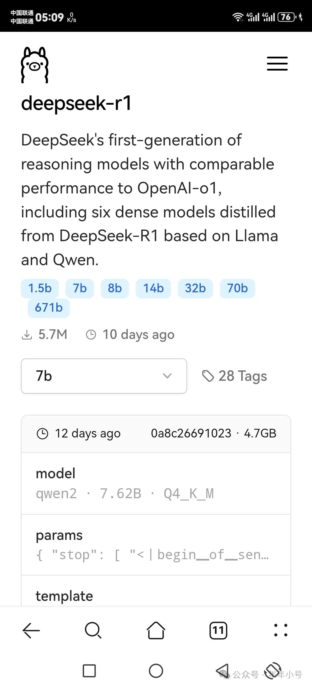 又回到Ollama官网上看看,官网上全是英文,硬着头皮仔细看过,才发现:原来,下载模型的命令中,还可以带一个指定模型大小的参数,比如: