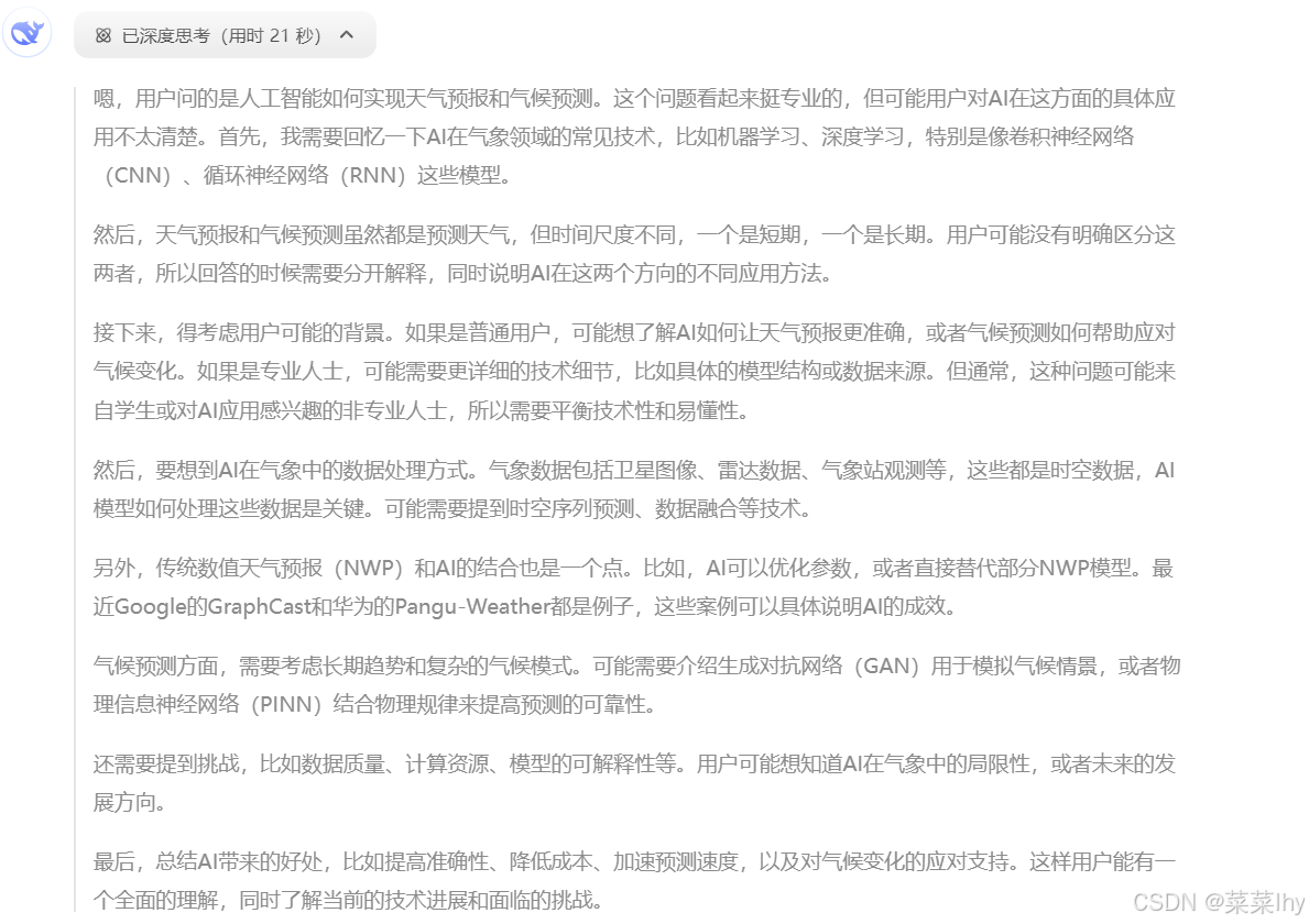 Deepseek介绍人工智能来进行天气预报和气候预测
