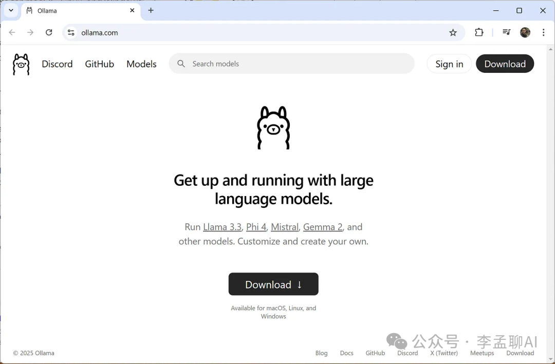 访问Ollama的官方网站,点击“下载”按钮,并将其安装在你的系统上。
