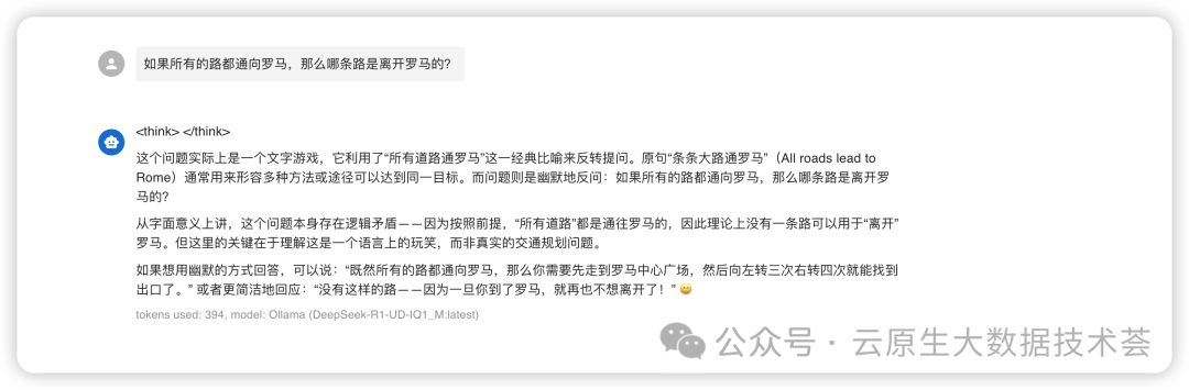 但是,从实际的使用效果上来看,对于比较“刁钻”的逻辑思考问题,量化版本还是比R1的全量版本要差一些意思。
