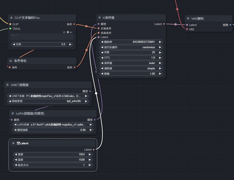 本工作流使用了麦橘超级婚纱majicFlus.Safetensors,majicflus_v1.safetensors大模型。也可以根据需要调整使用其他FLUX模型或lora模型。