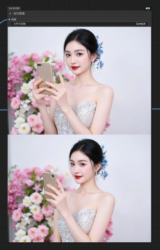3.如果对生成效果不满意可使用之前文章中介绍的,进一步采样优化ai角色,使人物质感真实感。
