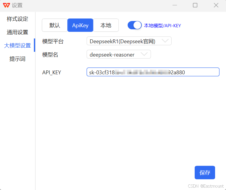 第三步,在大模型设置中,选择“本地模型/API-KEY”。