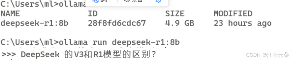 操作步骤:官网首页 → 左上角 → Models → deepseek-r1。成功后出现 “>>>” 的提示符,在此处输入你的问题回车就可以了。通过代码调用 Ollama 提供的 API 接口,实现模型的能力。命令:ollama run deepseek-r1:8b。如果需要,可以安装一个简易界面来使用模型。