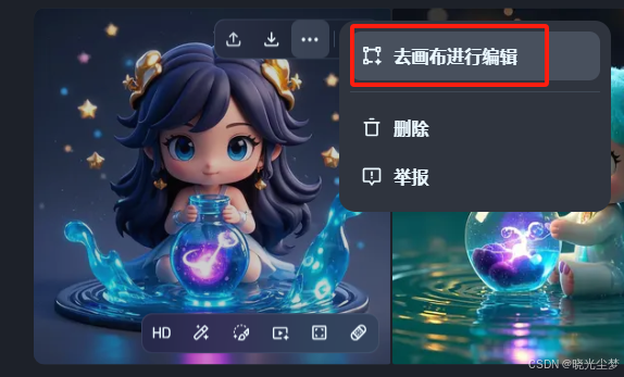 待图片生成后,点击去画布进行编辑,导出下载(这样可以去水印)