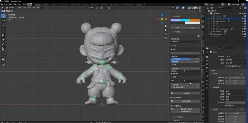 将 AI 生成的模型导入后,你会发现,所有标记点的位置和颜色都有清晰的参考图提示,你只需要像玩拼图一样,把标记点拖到对应的位置,就能轻松完成绑定。这个过程,真的是简单到 “有手就行”。
