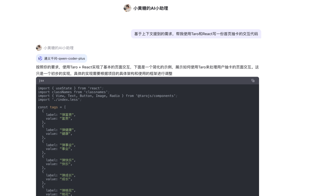 1、 基于活动规则、页面功能和需求描述,通义Qwen-coder-plus生成了小程序页面代码。