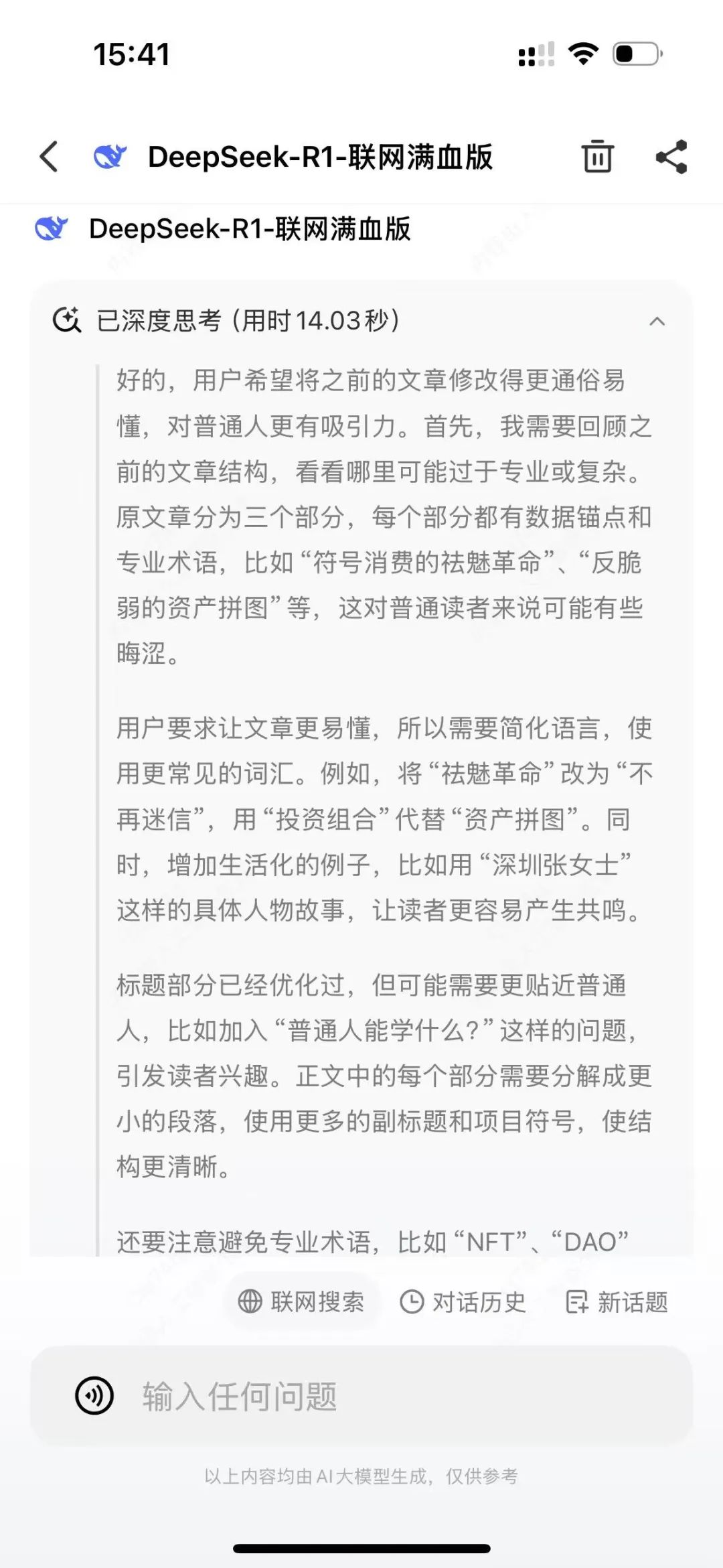 第一个方法:微信搜一搜+DeepSeek=王炸组合