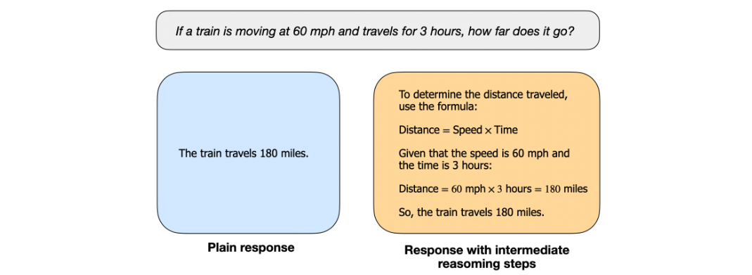 本文将“推理”定义为回答那些需要复杂的、多步骤生成的过程,并且这些步骤之间需要中间推理的任务。例如,类似“法国的首都是哪里?”这样的问题并不涉及推理。相比之下,像“如果一列火车以每小时60英里的速度行驶,并且行驶了3小时,它走了多远?”这样的问题则需要一定的推理。例如,这个问题需要识别距离、速度和时间之间的关系,才能得出正确的答案。