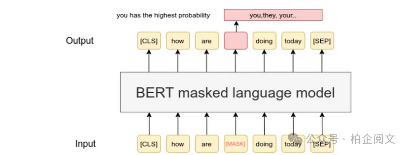 掩码语言建模(MLM):BERT不是预测序列中的下一个单词,而是被训练来预测句子中随机掩码的词元。这迫使模型在进行预测时考虑句子的整个上下文——包括前面和后面的单词。例如,对于句子 “The cat sat on the [MASK] mat”,BERT会根据周围的上下文学习预测出 “soft”。