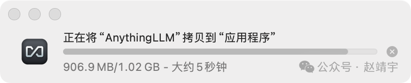 拖动时可以看到AnythingLLM安装程序有1G大小: