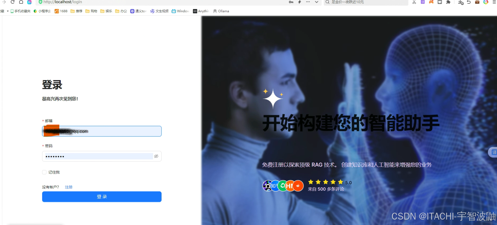 下载会比较耗时。下载完成后会自动运行。此时可以通过浏览器访问RAGFlow