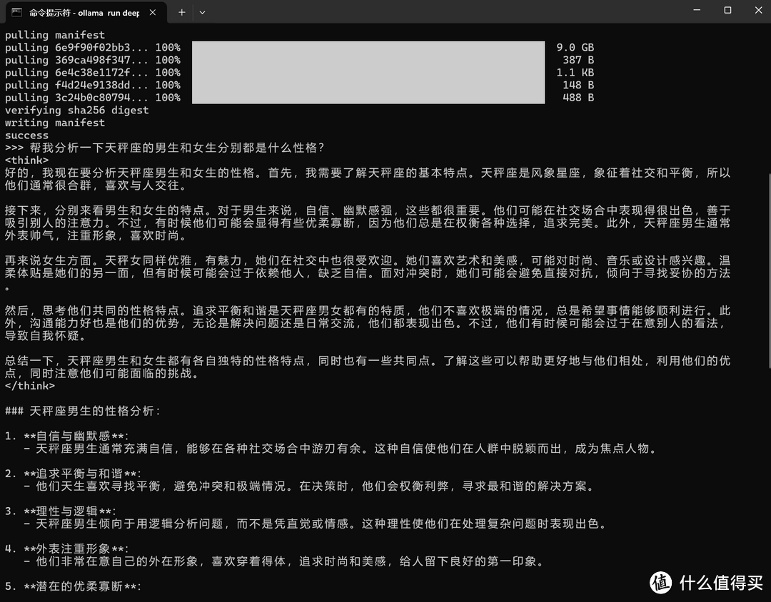 模型下载完成后,我们就直接可以在命令提示符面板中使用它了。