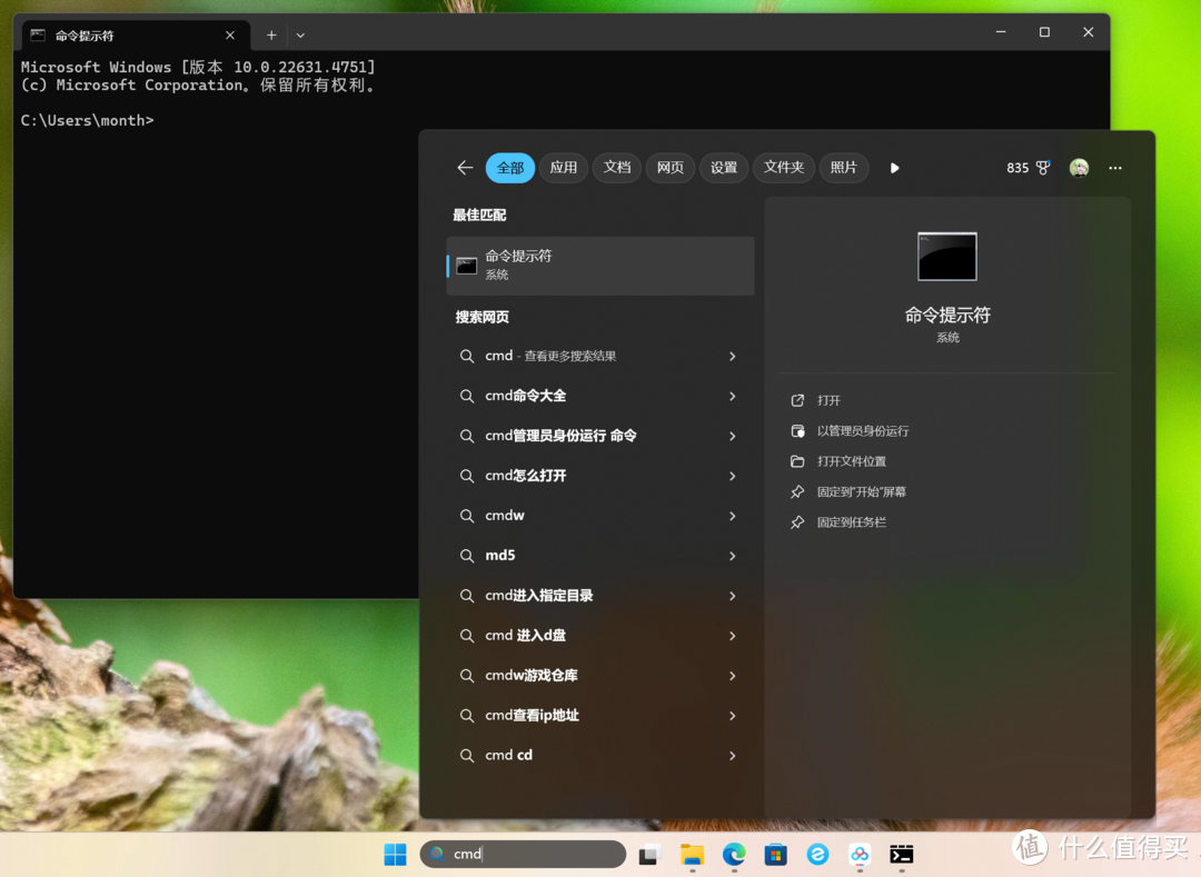 Ollama 安装完成后需要打开电脑的 CMD ,也就是命令提示符,只需要在电脑下方的搜索框中输入 cmd 即可打开。