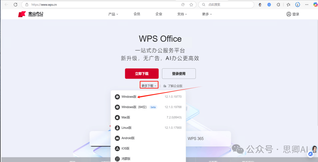 - 访问WPS官网,点击更多下载