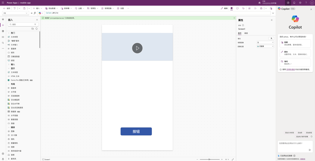 多样化应用类型:支持创建画布应用、模型驱动应用和模板应用三种类型的应用。同时,还支持使用 AI Copilot 自动生成应用。