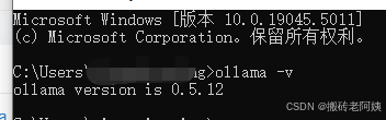 3.安装完成后,打开命令行(Win + R,输入cmd),输入ollama - v检查是否安装成功。