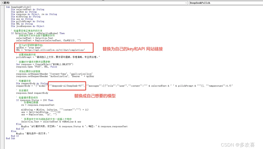 点进去到一个新的页面,在右侧代码部分可以看到网站链接以及模型名称,直接复制后在word代码块替换就行
