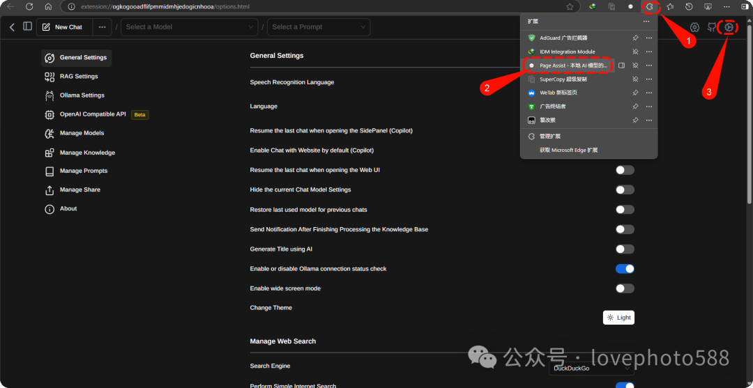 准备工具:Ollama、Edge(微软浏览器)、Page Assist(扩展应用)