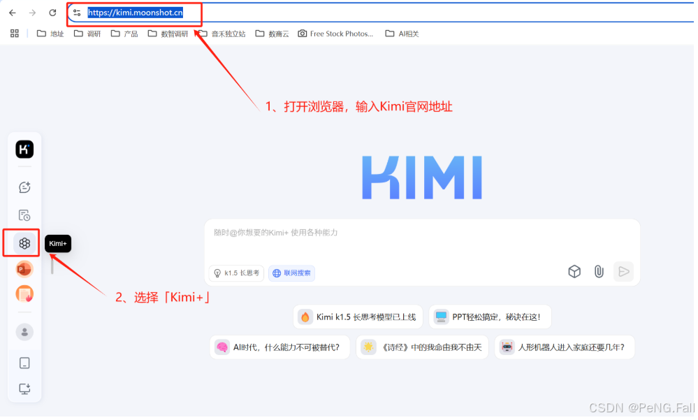 Kimi地址:Kimi.ai - 会推理解析,能深度思考的AI助手 首次需注册或扫码登录