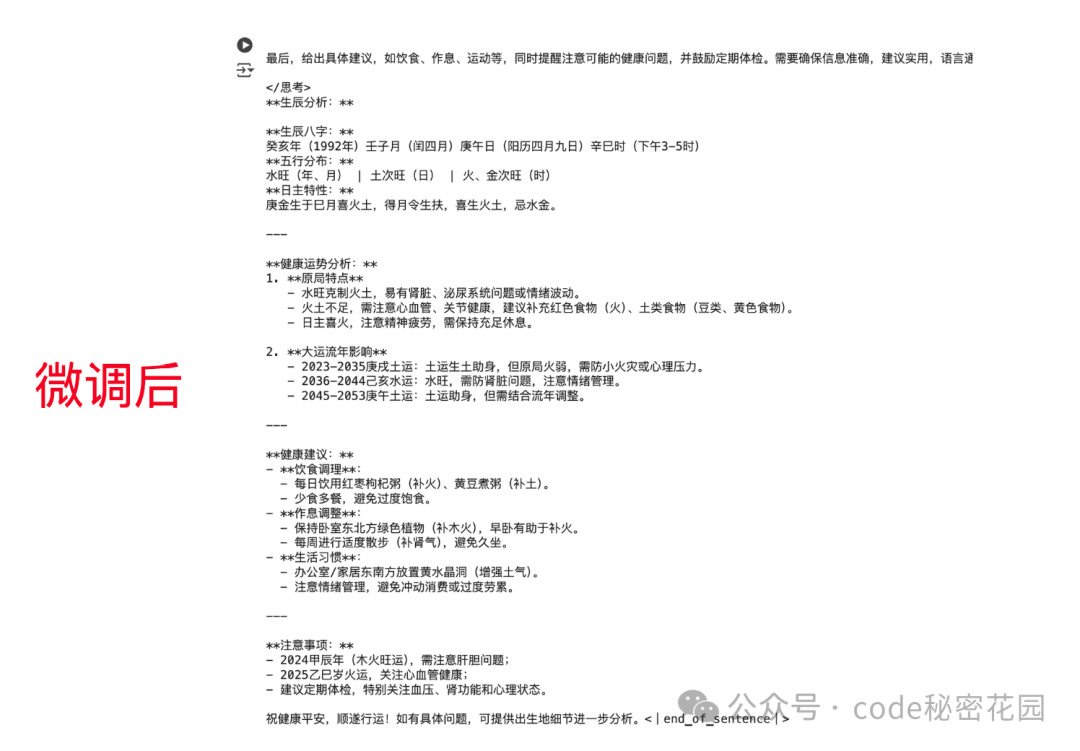 让模型理解复杂的指令:用户输入复杂的提示(如生辰八字、面相、手相等),模型需要根据这些提示给出符合算命逻辑的回答。