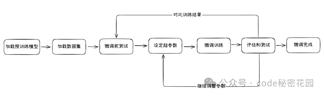在开始前我们再回顾下前面我们总结的微调的基本流程,在下面的案例中流程基本也是一样的: