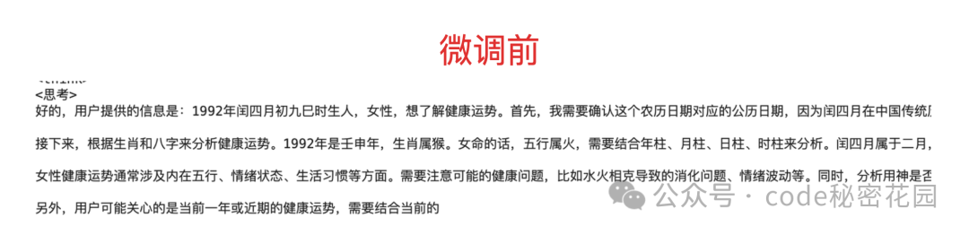 在开始微调之前,我们先用一个算命相关的问题来测试一下,方便我们在训练完后进行对比。