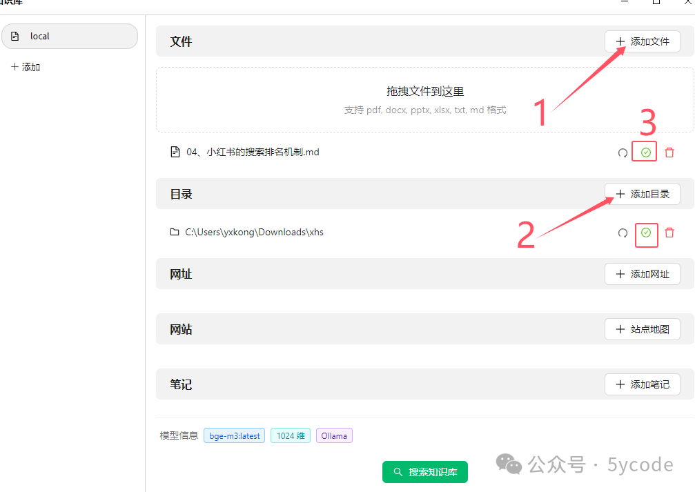 cherry可以添加文档,也可以添加目录(这个极其方便),添加完以后出现绿色的对号,表示向量化完成。