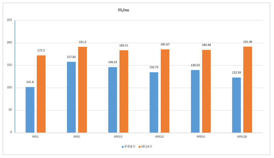 随着并发请求数(RPS)增加,TTFT会显著增加,意味着用户等待回答的时间增加;