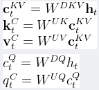 通过上一节可知,DeepSeek-V2对Q和K都进行了压缩(如下图 带着蓝色下划线的):