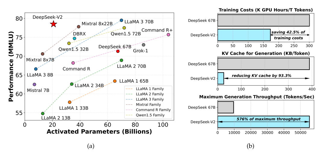 DeepSeek-V2属于DeepSeek的第二代版本,参数规模虽然达到了庞大的236B,但由于其MoE的结构,使得其中每个token激活仅21B的参数,且支持128K的上下文