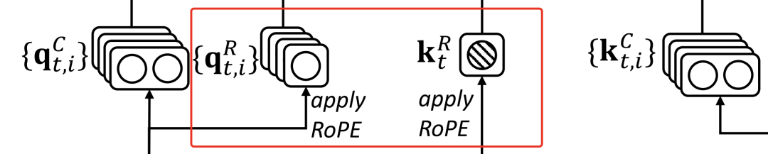 (如论文中所说,we propose the decoupled RoPE strategy that uses additional multi-head queries q𝑅𝑡,𝑖 ∈ R𝑑𝑅ℎ and a shared key k𝑅𝑡 ∈ R𝑑𝑅ℎ to carry RoPE, where