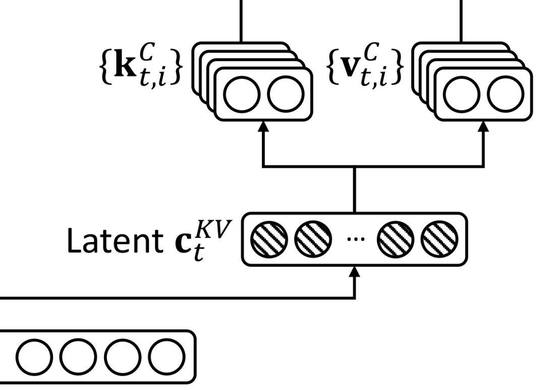 - 如上图所示(在MHA GQA中大量存在于keys values中的KV缓存——带阴影表示,到了MLA中时,只有一小部分的被压缩Compressed的Latent KV了) 那,MLA具体如何做压缩呢,详看下节