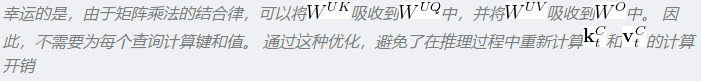 (即如论文中所说,during inference, since 𝑊𝑈𝐾 can be absorbed into 𝑊𝑄, and 𝑊𝑈𝑉 can be absorbedinto 𝑊𝑂, we even do not need to compute keys and values out for attention)
