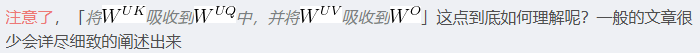 「至于如何理解absorb 𝑊𝑈𝐾 into 𝑊𝑈𝑄, and 𝑊𝑈𝑉 into 𝑊𝑂,下文会提到,比如前者absorb 𝑊𝑈𝐾 into 𝑊𝑈𝑄