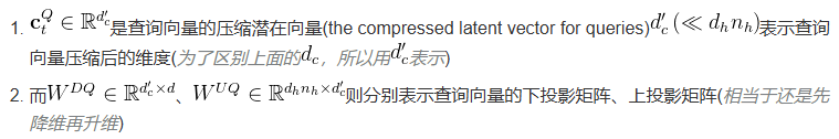 所以论文中也提到为了降低训练过程中的激活内存activation memory,DeepSeek-V2还对queries进行低秩压缩——即便这并不能降低KV Cache,而其对Q的压缩方式和K、V一致,依然是先降维再升维
