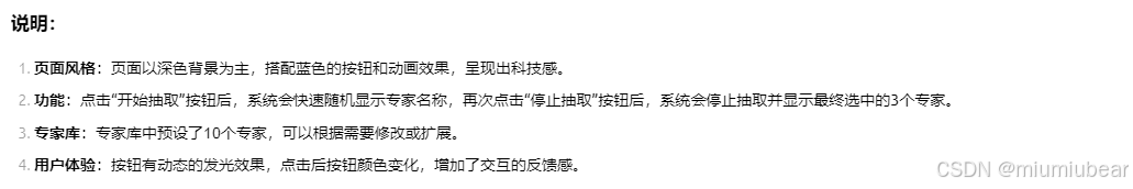 请生成一个专家随机抽取的系统,点击抽取,再次点击结束,需要从专家库中抽取3个专家,页面风格以主流的科技元素为主,方便易用