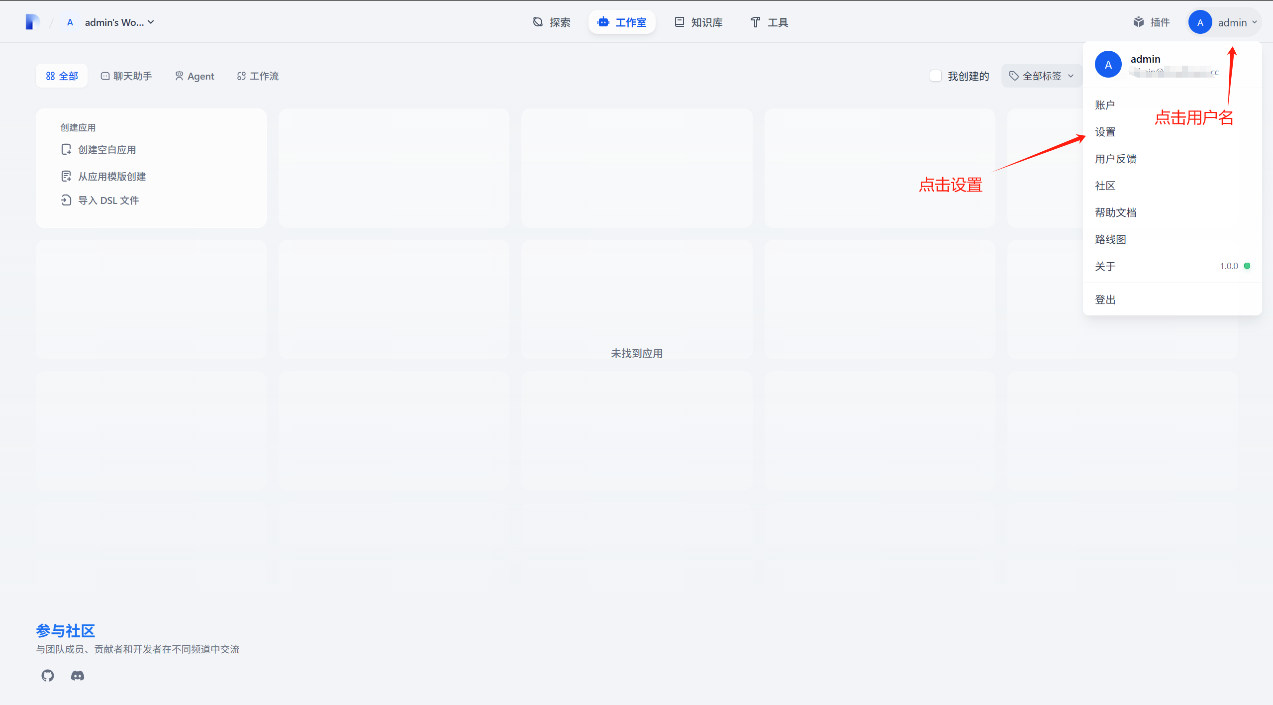 随后我们来开始使用 Dify 真正强大的功能,我们回到 http://[你的ECS公网IP]/apps 中点击【从应用模板创建】: