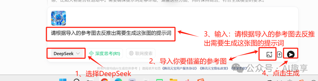 第一步:用腾讯元宝上传参考图去反推提示词