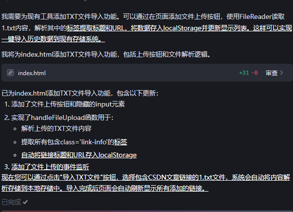 用Trae编写第一个有用的程序,搞定CSDN的历史的添加功能,DeepSeek-r1写程序谁不爱呢。颤抖吧初级程序员