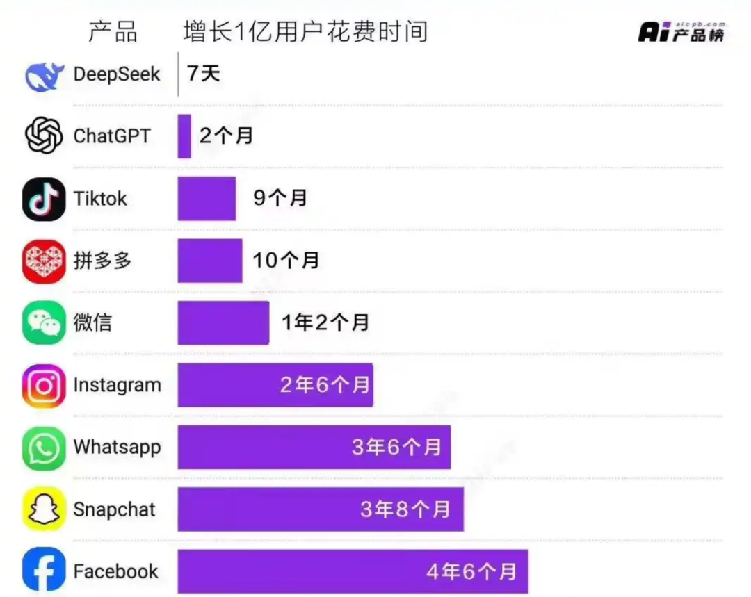 尤为值得一提的是,超过 80% 的用户是在最后一周涌入的,也就是说,DeepSeek 在短短 7 天内就实现了 1 亿用户的增长,而且这一惊人成绩还是在没有进行任何广告投放的情况下取得的,DeepSeek-R1 也因此成为了一款当之无愧的超级产品。