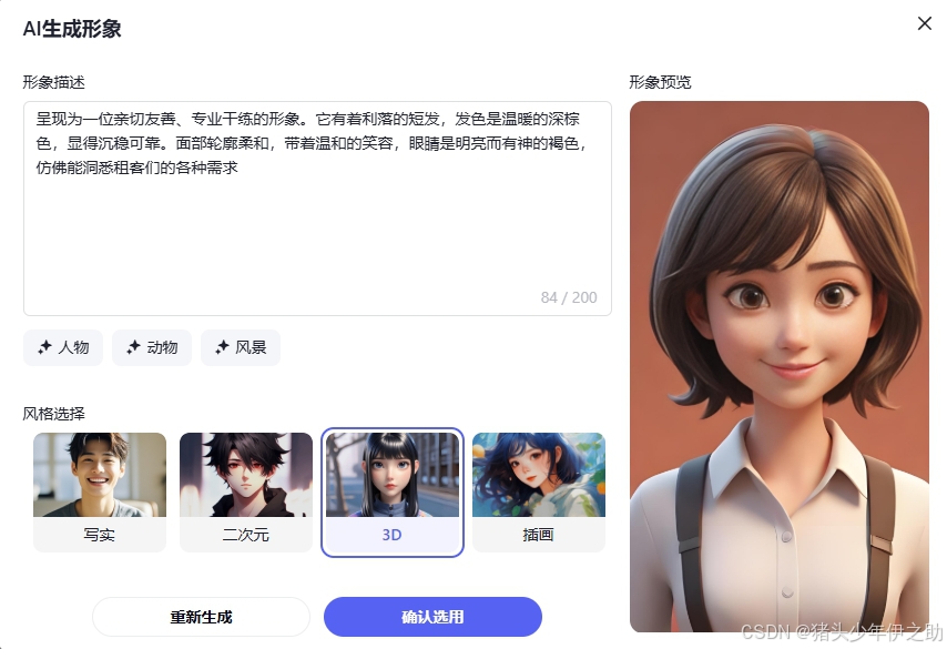 提示词:呈现为一位亲切友善、专业干练的形象。它有着利落的短发,发色是温暖的深棕色,显得沉稳可靠。面部轮廓柔和,带着温和的笑容,眼睛是明亮而有神的褐色,仿佛能洞悉租客们的各种需求。