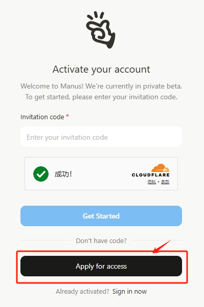 1、登录Mauns官网的申请页面:https://manus.im/invitation ,点击“Apply for access”